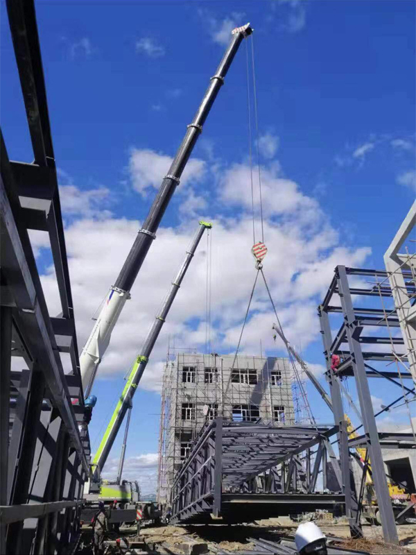 龍慶鋼構合作吊裝40噸工程現場(chǎng)